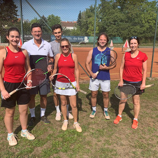 Das 1er Doppel musste sich 2:6 3:6 geschlagen geben, eine gute Leistung, denn die Offenburger Nummer 1 spielte quasi alleine gegen zwei, seine Partnerin beobachtete alles mit Staunen und hin und wieder ließ ihr Partner Ihr doch einen Ball, eventuell ausversehen, übers Netz schlagen. Das 3er Doppel Kerstin und Alexander Maier konnte souverän mit einem 6:2 6:3 ausgleichen und so sollte das 2er Doppel die Entscheidung bringen. Der erste Satz wurde schnell mit 1:6 verloren aber Linda Decker / Alexander Waag kämpften und führten plötzlich 5:1 im zweiten Satz, da Tennis ein Kopfsport ist und die beiden gedanklich vielleicht schon im Match- Tiebreak waren, lief plötzlich nur noch wenig und das Match wurde mit 1:6 5:7 verloren. Trotz der 4:5 Niederlage hatten alle einen riesen Spaß, zusammen mit den Offenburgern beim Abendessen und auch noch danach.